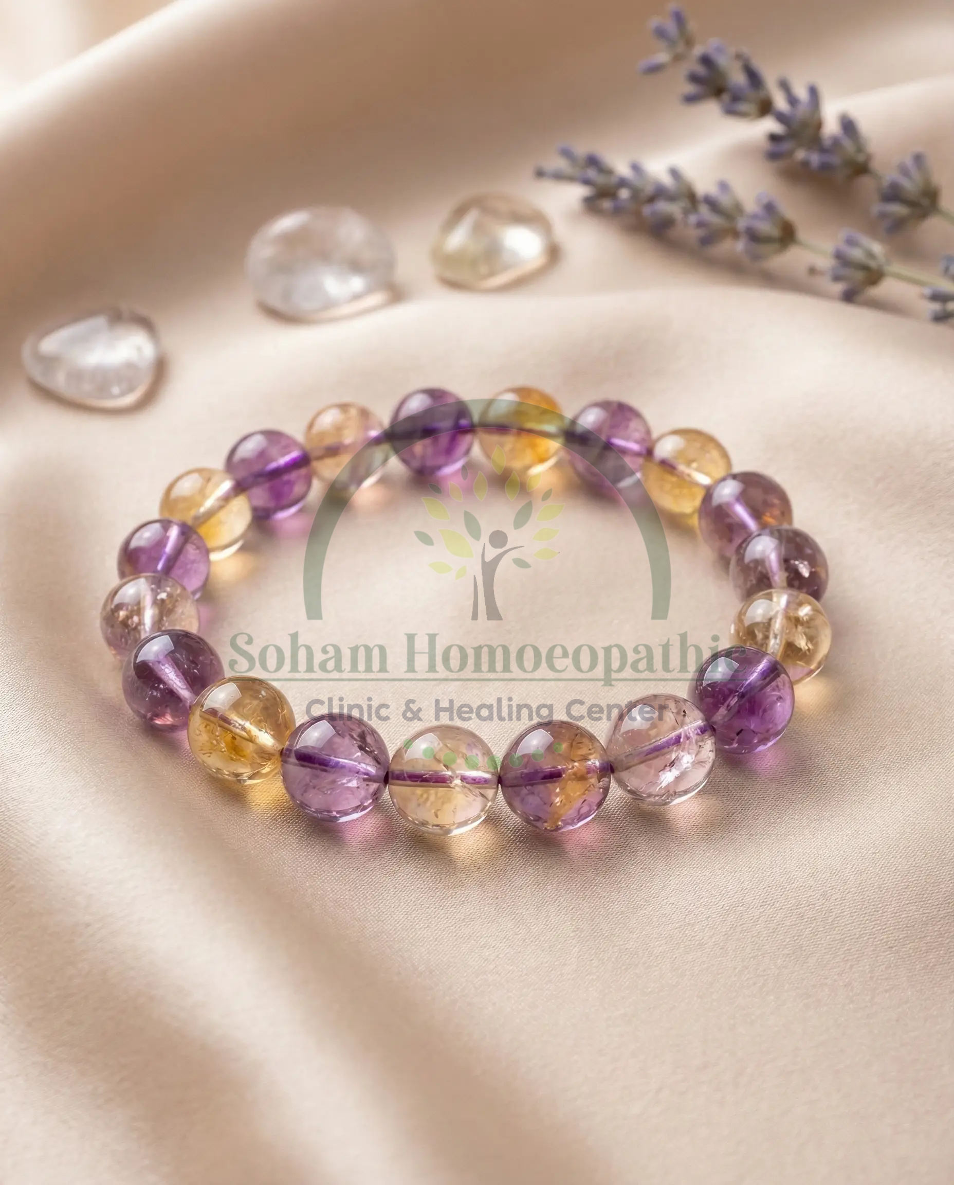 Ametrine is a rare natural blend of Amethyst and Citrine. This powerful combination brings emotional balance, spiritual clarity and strong manifestation energy. It aligns the mind with positive intentions and supports both calmness and motivation.