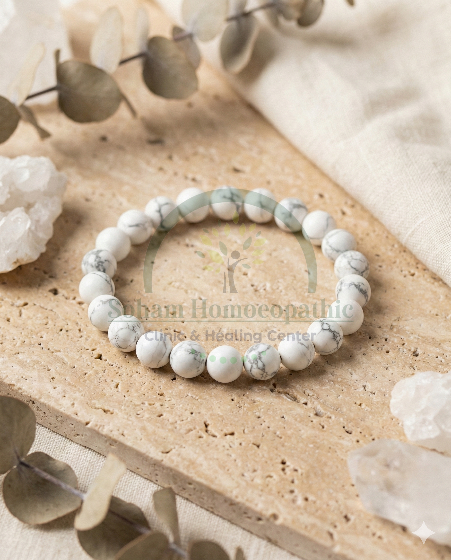 Howlite is known for its calming and soothing qualities. It helps slow down an overactive mind and promotes patience, emotional healing, and restful sleep.