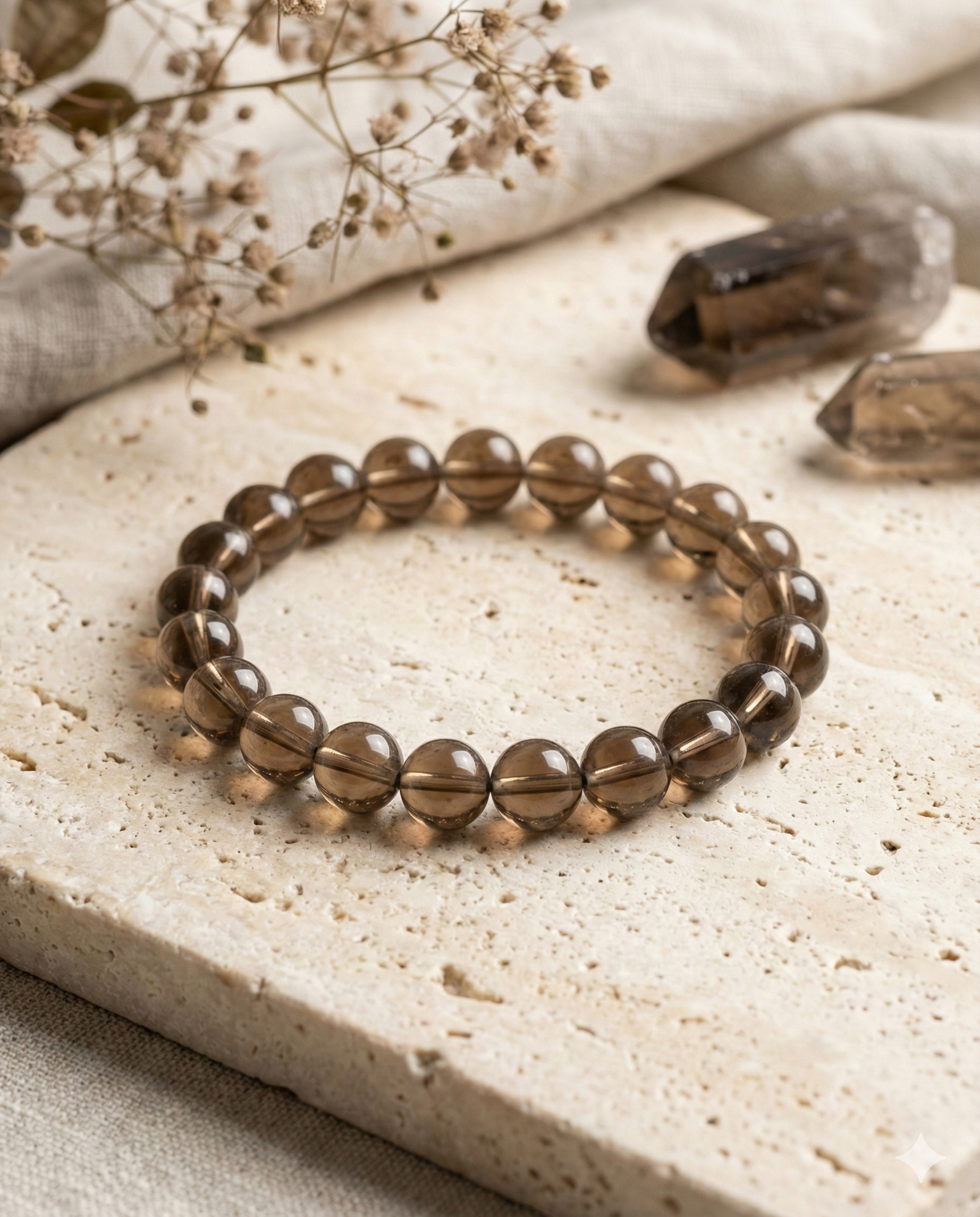 Smoky Quartz is known for its powerful grounding and detoxifying energy. It helps remove negativity, reduce stress, and strengthen emotional resilience.