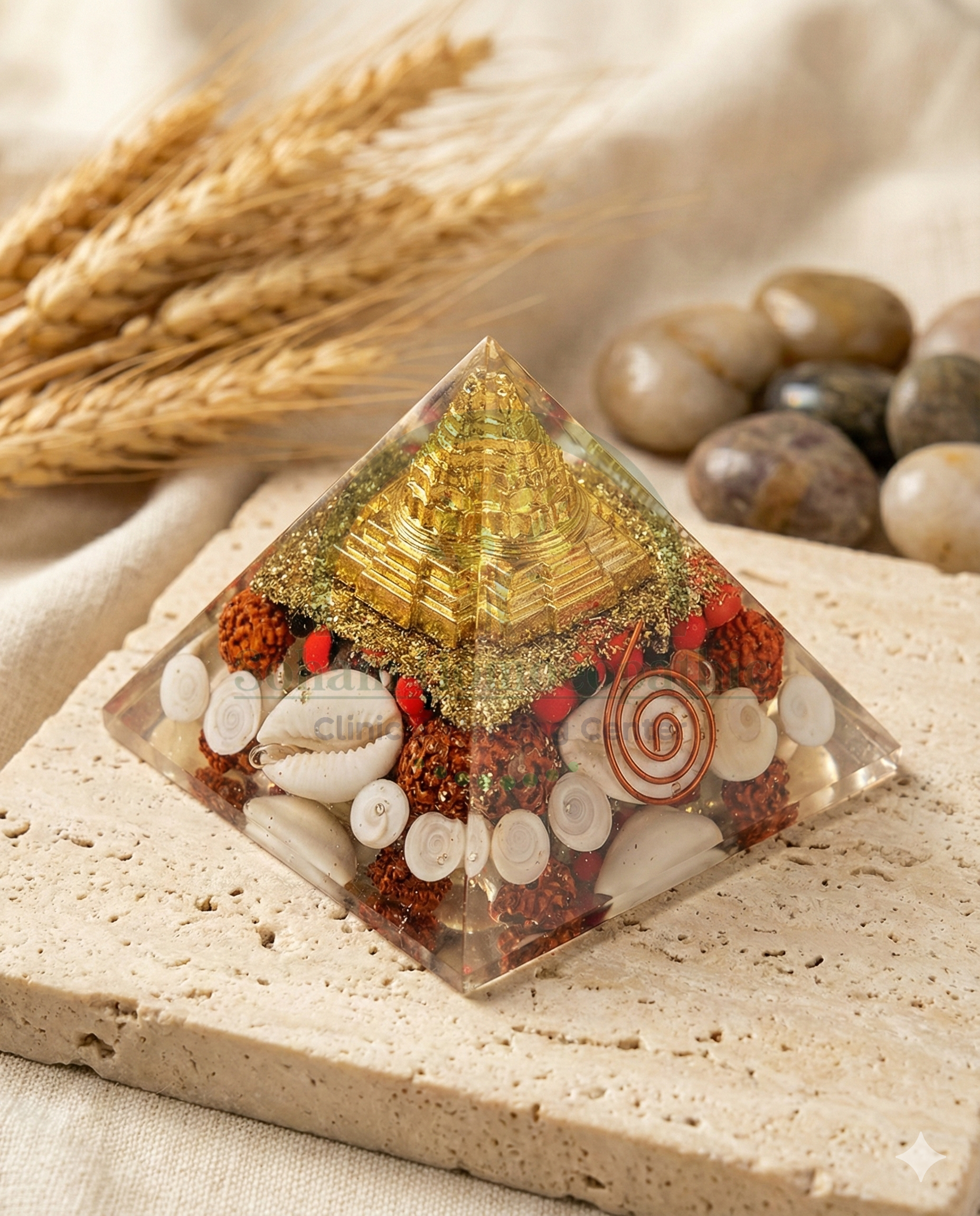 This pyramid is infused with energies that represent Goddess Laxmi. It supports financial growth, stability, and a steady flow of abundance into your home or business.